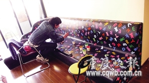 吳女士的家墻壁是在墻體進(jìn)行人工手繪。與用墻紙、乳膠漆相比,手繪墻畫不僅不會(huì)掉色,而且很便宜。吳女士家,四幅墻畫和沙發(fā)手繪,一共不到6000元。(記者 陳寒星)
