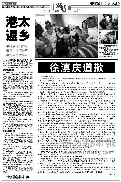 因承諾“如果深圳房價(jià)下跌就道歉”(本報(bào)1日、3日連續(xù)報(bào)道),今天,北大教授徐滇慶兌現(xiàn)了他的諾言,在南方都市報(bào)上刊登了24cm×17cm豎半版的道歉廣告。