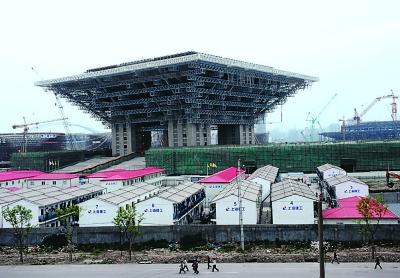 4月12日,上海世博會中國館“東方之冠”基本成型。圖為中國館“東方之冠”外觀。 張向陽攝