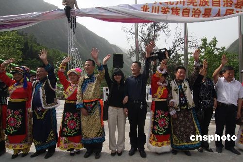 4月25日,四川省綿陽市北川縣政府為20對震后重組家庭夫婦在吉娜羌寨廣場集體婚禮彩排。26日,20對震后重組家庭夫婦將在吉娜羌寨廣場集體婚禮,政府會為他們舉行壩壩喜宴,每對新人約請8名親朋好友參加。慶典之后,政府還將為新婚夫婦們送上價(jià)值10萬元的厚禮--海南三亞5日游。這是北川自2003年成立羌族自治縣以來舉行的首場集體婚禮。這場婚禮是由北川羌族自治縣政府出資,專為北川震后重組家庭操辦的。此次活動有利于災(zāi)區(qū)民眾看到人生的希望,走出地震陰影,開始新的生活,“建起精神家園”,也寓意著“要建大家,先建小家”。中新社發(fā) 郭國權(quán) 攝