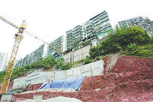 一年前,施工隊(duì)陸陸續(xù)續(xù)地來到這里,將這里的常青樹一一砍倒。接著,施工隊(duì)開來推土機(jī),鏟平了小土坡。他們用了一天的時(shí)間,就在這里搭起了一整片工棚。居民們聽說,這里將建起一幢高達(dá)16層的樓房,一個(gè)叫重慶市運(yùn)發(fā)房地產(chǎn)開發(fā)有限公司的單位則是樓盤的承建者。