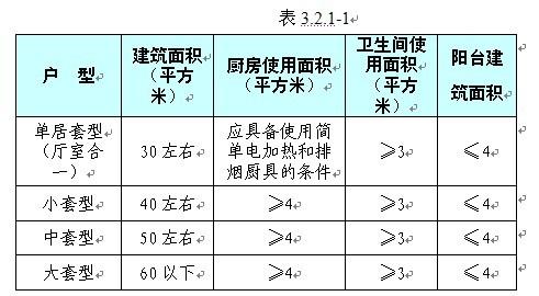 2.2.1 公共租賃住房戶型設(shè)計面積標準如下表3.2.1-1
