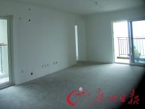 小區(qū)里綠化早已到位,房子也早已建好,所有的電梯都已經(jīng)可以正常使用。記者隨意走進了小區(qū)11棟35C單位查看,這是一間約90㎡的三室一廳,有雙陽臺。這是小區(qū)里面積最小,也是最普通的戶型之一。
