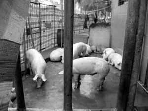 周先生是附近的一名住戶,據(jù)他介紹,這些豬是居民樓的房東養(yǎng)的,豬圈已存在數(shù)月之久。除了臭味難聞外,有時(shí)早上五六點(diǎn)豬發(fā)出的嚎叫聲嚴(yán)重影響住戶的正常休息。 周圍住戶曾向有關(guān)部門投訴過,但不知何故一直沒有人來處理。在豬圈一側(cè),記者看到一輛白色人貨車,貨車車廂內(nèi)有豬糞。