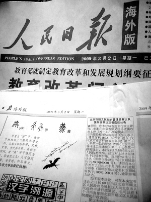 《人民日報》海外版廣告部的工作人員告訴記者,海外版面向全世界80多個國家發(fā)行,城管部門刊登《強制拆除決定書送達(dá)公告》是第一次。(記者 王彬)
