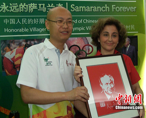 薩翁出生地巴塞羅那的世博展館,正好在國奧村案例館的對面,當(dāng)天也引來不少中國游客緬懷薩翁。現(xiàn)場,薩翁與中國國家主席胡錦濤的合影、薩翁1992年6月16日傳遞奧林匹克火炬等圖片吸引不少參觀者流連駐足。