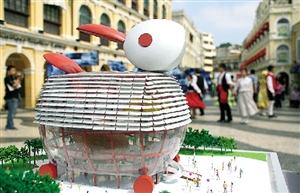 上海世博澳門館“玉兔宮燈”模型在展覽現(xiàn)場(chǎng)展示。(圖片來(lái)源:澳門日?qǐng)?bào))