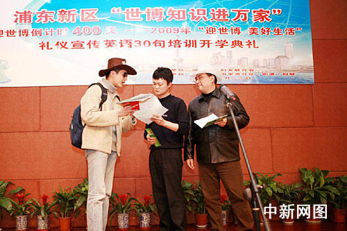 日前,由上海市浦東新區(qū)婦女聯(lián)合會主辦、周家渡社區(qū)(街道)婦聯(lián)承辦的浦東新區(qū)“世博知識進(jìn)萬家”迎世博倒計時400天——2009年“迎世博、美好生活禮儀宣傳英語30句培訓(xùn)開學(xué)典禮活動”在周家渡社區(qū)文化中心開展。浦東新區(qū)的23個街、鎮(zhèn)婦聯(lián)參加活動。