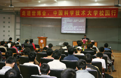 作為中國2010年上海世博會安徽宣傳周的重要活動——“中國的機遇、世界的盛會”世博主題講座在中國科技大學(xué)開講。上海世博局國內(nèi)參展顧問、世博會宣講團專家黃耀誠系統(tǒng)地介紹了世博會的歷史和舉辦意義,并著重介紹了上海世博會的籌備情況。