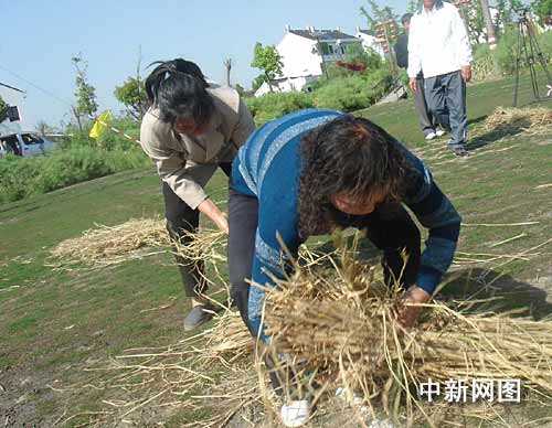 連日來,上海市及各區(qū)縣紛紛舉行各種形式的慶祝活動,迎接二0一0年上海世博會開幕倒計時一周年。在今天下午的廊下鎮(zhèn)記者看到,一個多由農(nóng)民參加,頗有江南鄉(xiāng)村特色的體育節(jié)拉開了帷幕。據(jù)主辦方介紹,這個名為“健康迎世博”的廊下鎮(zhèn)第二屆鄉(xiāng)村體育節(jié),旨在表達當?shù)剞r(nóng)民希望通過體育運動來迎接世博會開幕的心情,同時也為“五一”假期里來此郊游的滬上市民提供一個參與鄉(xiāng)村游戲的舞臺。將持續(xù)至5月3日的本屆鄉(xiāng)村體育節(jié),設(shè)立的十個體育游戲項目,多是從日常的農(nóng)活中提煉而來的,包括捆稻草、插秧、搓跳繩、搶在暴風雨前、拋接米袋和運磚造房子等,充滿了鄉(xiāng)村野趣。