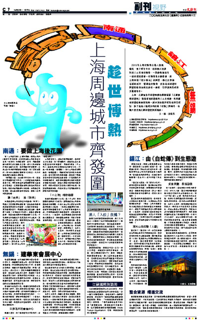 香港文匯報報道稱,世博會是全國盛事,而上海周邊“近水樓臺”的南通、鎮(zhèn)江及無錫等鄰近城市,都想借世博會,把各自的旅游和商貿(mào)經(jīng)濟(jì)效益推至高峰。最近,它們便剛完成很多配套項目。
