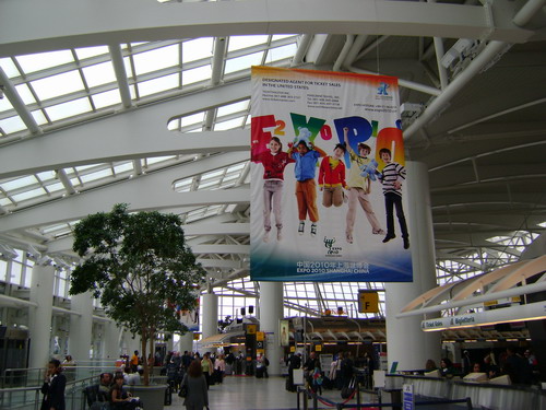 5月14日,從今年4月20日起,上海世博會公益廣告出現(xiàn)在美國紐約機(jī)場、美國洛杉磯機(jī)場、英國西斯羅機(jī)場、法國戴高樂機(jī)場、德國法蘭克福機(jī)場、日本成田機(jī)場、韓國仁川機(jī)場。在上海世博會宣傳公益廣告上,不同膚色的孩子們懷抱著世博吉祥物海寶,一張張熱情的笑臉歡迎著五湖四海的人們。