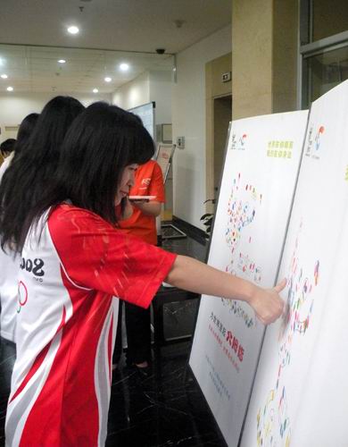 5月23日,恰逢北京奧運(yùn)火炬上海站傳遞一周年之即,中國(guó)火炬手聯(lián)盟上海分會(huì)在位于浦東新區(qū)的世博會(huì)志愿者工作站舉辦了“情系世博盛事,再傳奧運(yùn)輝煌”的公益活動(dòng),來(lái)自全國(guó)各地的近三十位2008北京奧運(yùn)火炬手提出倡議,申請(qǐng)加入2010年上海世博會(huì)志愿者的行列,響應(yīng)“世界在你眼前,我們?cè)谀闵磉叀钡闹驹刚呖谔?hào),延續(xù)“和諧關(guān)愛”的奧運(yùn)火炬手精神。