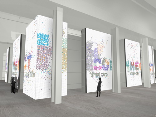 香港案例展覽結(jié)構(gòu)高6米,占地約530平方米。展覽結(jié)構(gòu)的光滑外墻會顯示動畫影像,影像隨著參觀人流的模式而轉(zhuǎn)變。每個影像點,代表著一名進入展覽場地或瀏覽網(wǎng)上展覽的參觀者。參觀者進入展覽后,便仿如置身于充滿動感的影片當中。