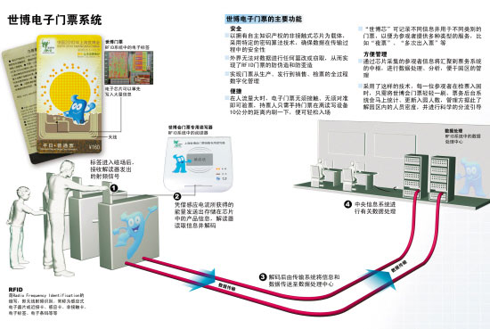 從今天起,普通市民能以個(gè)人名義訂購2010年世博會(huì)門票了。如果有幸拿到門票,千萬別忘了輕輕摩挲票面。你會(huì)發(fā)現(xiàn),某一處會(huì)有一塊指甲蓋大小芯片狀的突起。正是這方寸之間的小小芯片,賦予了世博會(huì)門票種種特異功能。比如,它具有電子簽名防偽技術(shù),讓假票無處藏身;隨著每位游客“刷票”進(jìn)入世博園區(qū),有關(guān)部門可以掌握實(shí)時(shí)的客流數(shù)量,有效引導(dǎo)客流……