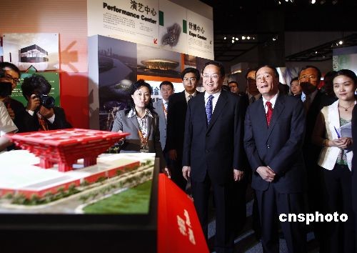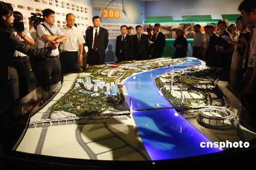 7月5日,上海世博會(huì)倒計(jì)時(shí)300天之際,由世博會(huì)組委會(huì)主辦的“走進(jìn)世博會(huì)”大型展覽在北京首都博物館開幕,國(guó)務(wù)院副總理王岐山、上海市委書記俞正聲等出席啟動(dòng)儀式。本次展覽匯集了最全面的上海世博會(huì)籌辦進(jìn)展資料,其中首次亮相的59個(gè)展館實(shí)物模型、中國(guó)館“萬(wàn)花筒”、張藝謀團(tuán)隊(duì)最新制作的世博園虛擬電影,是本次展覽會(huì)的亮點(diǎn)。中新社發(fā) 鄭雄增 攝