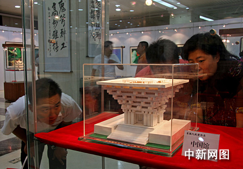 紙塑世博會(huì)中國(guó)館的作者名叫吉?jiǎng)倬,其手工作品展今天上午在首都圖書館開幕。他說(shuō):“國(guó)慶即將到來(lái),我特意制作了這個(gè)世博會(huì)中國(guó)館紙模為建國(guó)六十周年獻(xiàn)禮!”