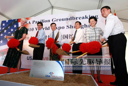 17日,今夏入伏后的第4天,上海最高氣溫升至36攝氏度。幾乎是在“烘烤”的氣氛下,美國商務(wù)部長駱家輝、中國商務(wù)部副部長馬秀紅、上海市常務(wù)副市長楊雄以及剛被奧巴馬政府任命為上海世博會(huì)美國展區(qū)總代表的何塞·維拉里爾、美國駐滬總領(lǐng)事康碧翠、上海世博會(huì)事務(wù)協(xié)調(diào)局局長洪浩等共同為美國館奠基培土。