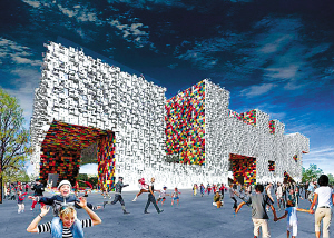 韓國文字不同于其他文字,一般人即便不識卻很容易辨認(rèn)。韓國國家館設(shè)計(jì)師正是巧妙地利用不同膚色人群的共同認(rèn)知,用韓文來“建造”展館:遠(yuǎn)觀展館,由幾個(gè)碩大的韓文字母連接而成;近看外墻,則為無數(shù)凹凸有致的韓文字母。可以說,韓國國家館是用韓文符號組成的抽象建筑物,是一個(gè)“空間化符號”,韓國文字的幾何學(xué)特性從建筑學(xué)角度被巧妙地重新詮釋,成為韓國國家館的獨(dú)特構(gòu)成要素,并因此成為世博園區(qū)的一個(gè)奇特景觀。