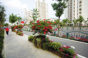 據(jù)悉,世博會期間,游客將從“歡慶鑼鼓、喜迎來客”等為主題的綠廊、彩練中走進(jìn)世博園區(qū)。定位于“綠廊、彩練、花島”的浦東南路已見雛型。