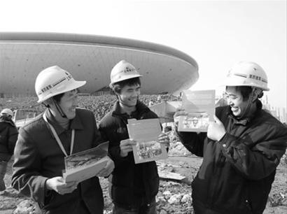 昨起,志愿者們分批把紀(jì)念冊(cè)送到建設(shè)者手中。“我們同村的老鄉(xiāng)都拿到了世博紀(jì)念冊(cè)。你們看,小徐這張照得還蠻年輕的呢!”47歲的林葉剛指著工地清潔工徐德宣調(diào)侃地說(shuō)。拿到貼有自己照片的世博紀(jì)念冊(cè),世博建設(shè)者們笑聲一片。