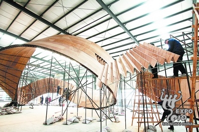 據(jù)悉,目前湖南館的地臺的鋼架、環(huán)體的胎架和其中一個(gè)環(huán)體以及投影機(jī)的桁架已經(jīng)基本完成,也將于近期啟運(yùn)到上海。相關(guān)的后續(xù)搭建工作計(jì)劃于4月15日前完成并投入試運(yùn)營。整個(gè)展館的組裝過程將歷時(shí)近100天。