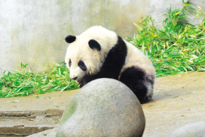 據(jù)介紹,“閩閩”出生于2008年9月3日晚,雌性,出生時(shí)體重102.8克,來(lái)上海時(shí)已長(zhǎng)到35公斤。“閩閩”的媽媽叫“竹韻”,第一次做母親就產(chǎn)下了雙胞胎,“閩閩”是其中的妹妹。她尖嘴、臉較圓,最喜歡和人玩耍,經(jīng)常爬在鐵欄上“深情”呼喚飼養(yǎng)員,是個(gè)典型的人來(lái)瘋。