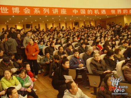 當(dāng)日下午1點(diǎn),距離講座開始還有一個(gè)多小時(shí),陜西省圖書館報(bào)告廳門前已經(jīng)排滿聽眾。報(bào)告廳講臺以上海世博會中國館為背景,會場內(nèi)張貼著上海世博會海報(bào),講座之前播放了上海世博會的專題宣傳片。報(bào)告廳有300多個(gè)座位,工作人員臨時(shí)加了板凳,還有相當(dāng)多的聽眾站在走道上。下午2點(diǎn)30分,吳建中在熱烈的掌聲中走上講臺,以精彩、生動的語言,豐富、翔實(shí)的多媒體資料,介紹了上海世博會的理念與形態(tài),還就世博會的歷史、功能、意義,以及中國2010年上海世博會的主要內(nèi)容一一作了介紹;為聽眾詮釋了世博會的主題及其文化和理念,展示了世博會的風(fēng)貌和魅力。演講進(jìn)入互動環(huán)節(jié),聽眾對如何參與上海世博會十分關(guān)心,吳建中耐心細(xì)致地與聽眾進(jìn)行了交流。