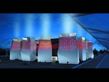 俄羅斯館占地6000平方米,是世博會最大的展館之一。它的外圍是12座不規(guī)則形狀的塔樓,聳立于草坪和水景之間,塑造出俄羅斯館傳統(tǒng)與現(xiàn)代相結(jié)合的外形。據(jù)V.P.Strashko介紹,“12”寓意著時(shí)間和生命的完整,塔樓紅、白、金三種顏色則分別象征著美麗、純潔和財(cái)富。此外,這些形狀不同的塔樓在功能上也各有分工,有的是餐廳,有的是俄羅斯城市風(fēng)采展示廳,其他的則是辦公區(qū)、貴賓廳、禮品店……在塔樓邊,還有一個(gè)露天咖啡廳。其中,兩座俄羅斯區(qū)域塔樓在世博會期間每兩周將舉辦聯(lián)邦主體推介展示活動(dòng),向參觀者展示俄羅斯各聯(lián)邦區(qū)域的特色;在創(chuàng)新塔樓內(nèi),俄羅斯館將通過展示城市基礎(chǔ)設(shè)施方面的最新成就,如潮汐電站工程,以展現(xiàn)俄羅斯當(dāng)代城市生活的整體圖景。
