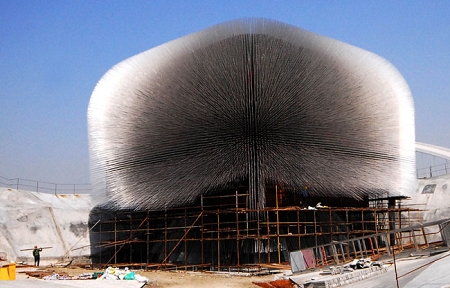 近日,2010年上海世博會(huì)英國館整體展示方案揭曉。英國館主體建筑仿佛綠色城市中的一朵“蒲公英”,展示主題定為“傳承經(jīng)典、鑄就未來”,分為“綠色城市”、“開放城市”、“種子殿堂”、“活力城市”四部分展示內(nèi)容。其中,由6萬根蘊(yùn)含植物種子的透明亞克力桿組成的巨型“種子殿堂”,是英國館的核心展示內(nèi)容。英國館預(yù)計(jì)4月下旬參與上海世博園區(qū)整體試運(yùn)營,并于5月1日正式開館。