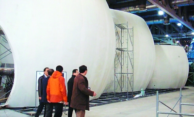 在山東館前,我們看見地面幾位工程師正在商量,上面的架子上幾位工人正在施工。王錦珍副會長向正在那里的施工負責(zé)人詢問進展情況,施工負責(zé)人回答說,我們施工進展很順利,這個月底就可以完工,并將很快轉(zhuǎn)入試運行。月底,省里的領(lǐng)導(dǎo)還將到這里來檢查。