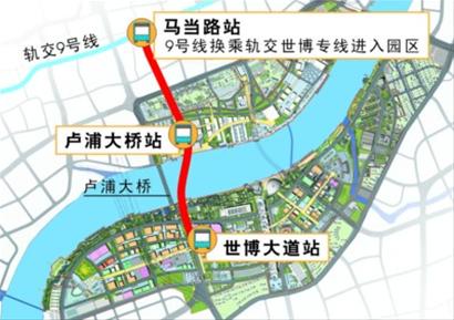 軌道交通世博專用線將在3站兩區(qū)間內(nèi)運(yùn)行,承擔(dān)入園、離園和園區(qū)內(nèi)的越江交通。世博專用線3站兩區(qū)間的長度為3.2公里,3個站點(diǎn)分別為內(nèi)外交通轉(zhuǎn)換的馬當(dāng)路站、浦西園區(qū)的盧浦大橋站、浦東園區(qū)的世博大道站。世博專用線配置6節(jié)編組列車4列,運(yùn)營2列,備用2列,運(yùn)營時間為9:00—24:00。另外在開園前與閉園后分別提供兩個班次的工作人員通勤交通。