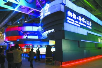 遼寧館位于上海世博園中國館旁的省區(qū)市館內,占地600平方米。鋼板打造的一朵藍色的巨大浪花,構成了遼寧館的整體外形,充分詮釋了遼寧館的主題“鋼韻海律”。遼寧老工業(yè)基地所創(chuàng)造的眾多“共和國第一”,沿海經濟帶、沈陽經濟區(qū)所帶來的新面貌都一一呈現(xiàn)。作為世界第一只鳥飛起以及世界第一朵花開放的地方,將有14片珍貴的古生物化石首次集體亮相遼寧館。據介紹,4月20日,遼寧館將開始試運行。