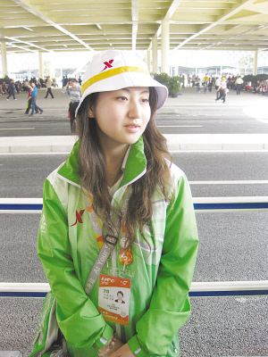 張?bào)蘩霞以诮,是?fù)旦大學(xué)視覺(jué)藝術(shù)學(xué)院的大一學(xué)生,標(biāo)準(zhǔn)的90后女孩。通過(guò)網(wǎng)上報(bào)名并獲得任用后,她成為了上海世博會(huì)首批志愿者,而如果再細(xì)分則可稱(chēng)作“高峰期志愿者”。“每天早上7點(diǎn)半不到就得到園區(qū),晚上下班時(shí)間不定,至少10點(diǎn)以后吧。”張?bào)薷嬖V記者,她每天要做的,就是站在這處位于商業(yè)中心最繁華的街角,為任何有需要的游客提供力所能及的幫助。接受采訪時(shí),女孩才正式上崗短短半日,“已經(jīng)為至少20個(gè)游客指路,或是回答他們的一些咨詢!