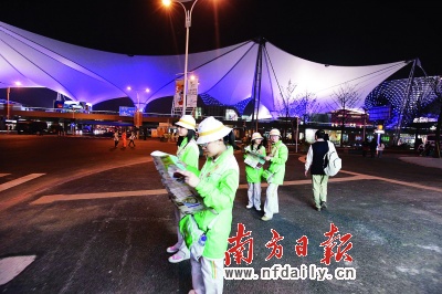 在“明星”云集的世博展區(qū),志愿者的光芒顯得非常薄弱,但他們就像漫天繁星一樣散布在園區(qū)各個角落里,照亮了夜空。