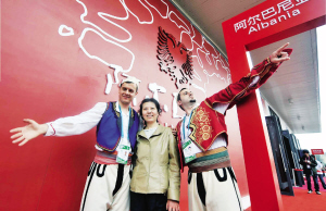 阿爾巴尼亞館的外墻,是一片耀眼的國(guó)旗紅;一只展翅的雄鷹,彰顯出山地民族的剛毅和堅(jiān)韌。這個(gè)地中海國(guó)家有個(gè)流傳千年的傳說(shuō):上帝造物時(shí),安排好地球上陸地、海洋、平原、山川之后,口袋里還剩下一些石塊,他順手扔去,石子變成了連綿起伏的山脈——阿爾巴尼亞。