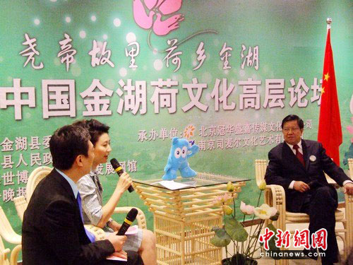 本屆論壇是第十屆中國金湖荷花•美食節(jié)的高端活動之一,借助世博會的平臺,讓荷文化作為金湖的形象大使,牽手世博,走向國際,發(fā)展金湖。論壇一改過去嘉賓輪流上臺發(fā)言的設(shè)計,采用央視訪談欄目的場景設(shè)計和節(jié)目流程,由央視名嘴陳偉鴻、王小丫現(xiàn)場主持。出席論壇的嘉賓們在主持人的引導(dǎo)下,聯(lián)系金湖發(fā)展和各自實(shí)際,圍繞“荷”氣生財論經(jīng)濟(jì)、以“荷”為媒說規(guī)劃和政通人“荷”談民生三大論題進(jìn)行現(xiàn)場訪談。