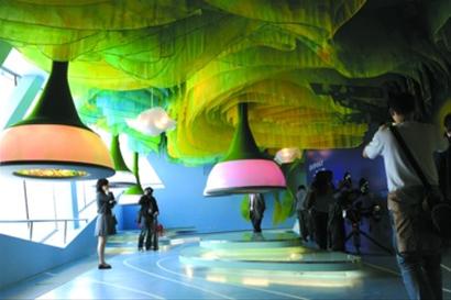 輕輕觸摸像蘑菇一樣的植物,感覺涼涼的、軟軟的;葉片上垂下長長的絲線,像白色的觸須……這是英國館里展示的“未來植物”。工作人員介紹說,將來可讓蘑菇狀植物粘附于室內(nèi)墻壁上,發(fā)揮吸音功能,降低噪聲;而垂下絲線的植物更加神奇,如將犯罪嫌疑人的基因植入這種植物體內(nèi),此后一旦檢測到相同的基因,植物就能自動發(fā)出聲音報警。等科學家的這些研究成熟后,看似神奇的童話將變?yōu)楝F(xiàn)實。
