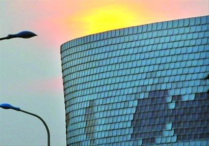 為什么帷幕能發(fā)電?原因就來自于帷幕上掛著的那1萬個“小太陽”,每個“小太陽”都有1塊內(nèi)嵌太陽能智能電池板,可以吸收光能而發(fā)出閃光。據(jù)介紹,這些小太陽的學名是聚碳酸酯板,每個20厘米見方,包括一個能量發(fā)生器、一個存儲介質(zhì)和一個LED形式的電力負載。吸收太陽光后,產(chǎn)生的能量可以轉(zhuǎn)換為白色燈光。在游客的照相機閃光燈閃亮時,“小太陽”便會回閃,如同在對你眨眼睛一般。隨之,它周圍的“鄰居”在感知動靜后,形成“多米諾效應(yīng)”,整個外墻就會閃成一片紅色光海。值得一提的是,1萬個“小太陽”白天在吸收太陽能和其他光能后,晚上就能為展館燈光供電。
