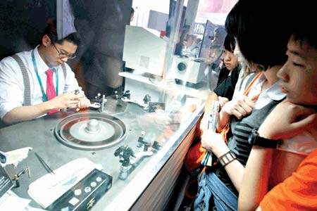 據(jù)劉子斌介紹,此次他們在世博會上首次開辟了裸鉆售賣的服務(wù),價位從1萬元到45萬元不等,沒想到在短短的兩個多星期內(nèi),就售出50多顆,其中最大方的一位買家更是買下了一顆價值20萬元的裸鉆。(范彥萍)