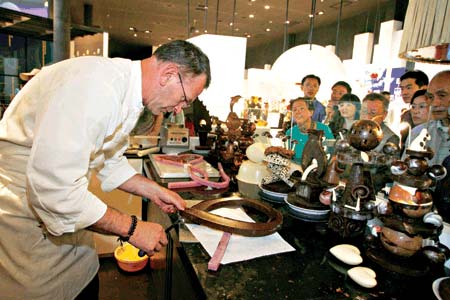 很少有游客會(huì)知道,從他的手下誕生的巧克力是有“巧克力中的勞斯萊斯”美譽(yù)的藝術(shù)品,而他的粉絲中更有美國(guó)前總統(tǒng)克林頓、女星伊麗莎白·泰勒等大牌人物。在結(jié)束他15天的上海世博會(huì)之行前,特里·莫瑞接受了本報(bào)記者的專(zhuān)訪(fǎng)。他興奮地告訴記者,回到比利時(shí),他就將研發(fā)一款“中國(guó)味”巧克力。