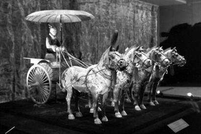 今天(1日)上午,上海世博會(huì)中國(guó)國(guó)家館的又一件鎮(zhèn)館之寶——“秦俑館一號(hào)銅車馬”在該館“國(guó)之瑰寶”展區(qū)亮相,這件國(guó)寶的展示將持續(xù)到世博會(huì)閉幕。