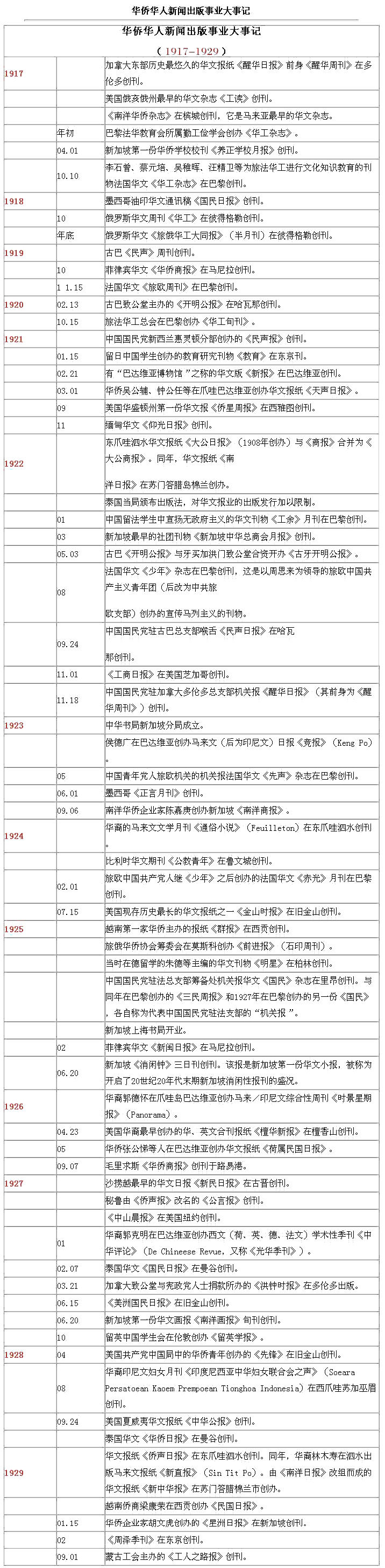 海外華文傳媒大事記