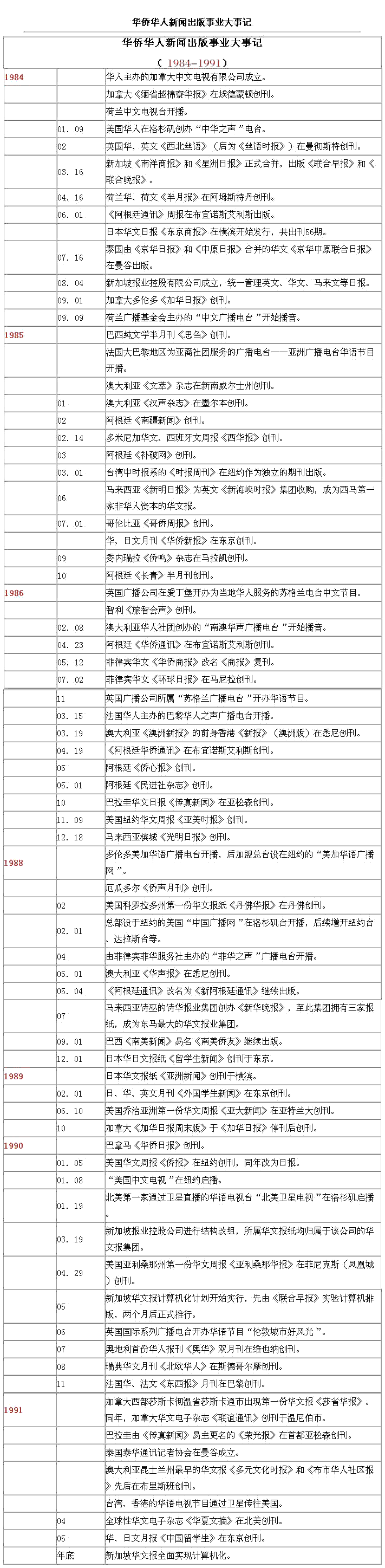 海外華文傳媒大事記