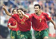 雖然自從1966年以來,葡萄牙隊(duì)僅僅3次打進(jìn)過世界杯決賽圈,而上一次是在1986年,雖然他們在世界杯歷史上最好戰(zhàn)績也僅是1966年的第三名,但這這個(gè)國家卻從來不缺少天才球星。葡萄牙歷史上最成功球星"黑豹"尤西比奧,不知在他的那個(gè)時(shí)代令多少足球?qū)I(yè)人士所折腰,F(xiàn)在,那批在1989年和1991年連續(xù)兩年取得世界青年足球錦標(biāo)賽冠軍,被稱為"黃金一代"的球星們也已經(jīng)成長起來。費(fèi)戈剛剛當(dāng)選世界足球先生,而他的同胞魯伊-科斯塔也在意大利賽場書寫著自己的輝煌。
