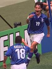 德爾-皮耶羅:斑馬王子,尤文圖斯的當家小生,意大利國家隊最有爭議的人物之一。他在1994-96年達到自己職業(yè)生涯的高峰,被譽為意大利的"金童"。不過在世界杯期間以及以后很長一段時間都狀態(tài)低迷,曾經(jīng)有很長一段時間沒有在運動戰(zhàn)中進球,唯一的進球手段只是點球,從而得了一個"點球皮"的外號。