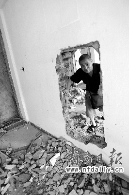 “目前24棟已經完全被拆除,25、26、27棟主體結構被破壞,29棟拆成了‘神仙洞’,31棟拆得漏雨,被稱為‘水簾洞’,幾十戶只好出去租房。在2009年11月還有50余戶居住、30多戶業(yè)主未簽約的情況下就開始拆遷,破壞小區(qū)達74天之久,已經嚴重違法。”顧先生表示。