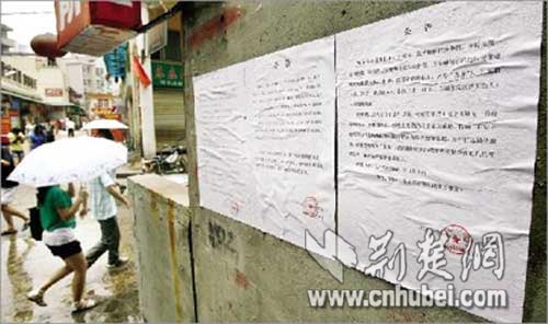昨日早晨,暴雨后的陳家灣一片泥濘,幾名中年男子正在看墻上的公告,其中一張7月7日發(fā)布的公告上,公布了小姐和嫖客的姓名、年齡。