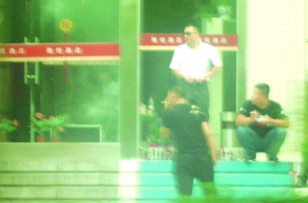 附近一位清潔工告訴記者,17日早晨6點多,這群年輕男子就到了酒店,沒多久里面的工作人員和旅客就被趕了出來。