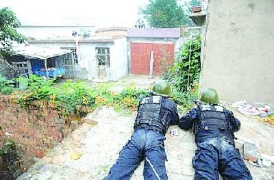 天亮后,警方開始采取行動。經(jīng)對環(huán)境的縝密勘察,在院落的東、東南和西、西南四個方向的制高點分別設(shè)置狙擊點,以武警4名狙擊手為主,采用狙擊步槍和自動步槍封控大院。兩名武警突擊隊員在罪犯藏匿的房頂上,用磚頭砸開玻璃,而后向兩個房間內(nèi)投入4枚催淚彈,逼犯罪嫌疑人出屋。公安刑警7人,利用武警趁黑在院門配房南墻挖開的缺口處進(jìn)入院內(nèi),迅速前出,實施抓捕。